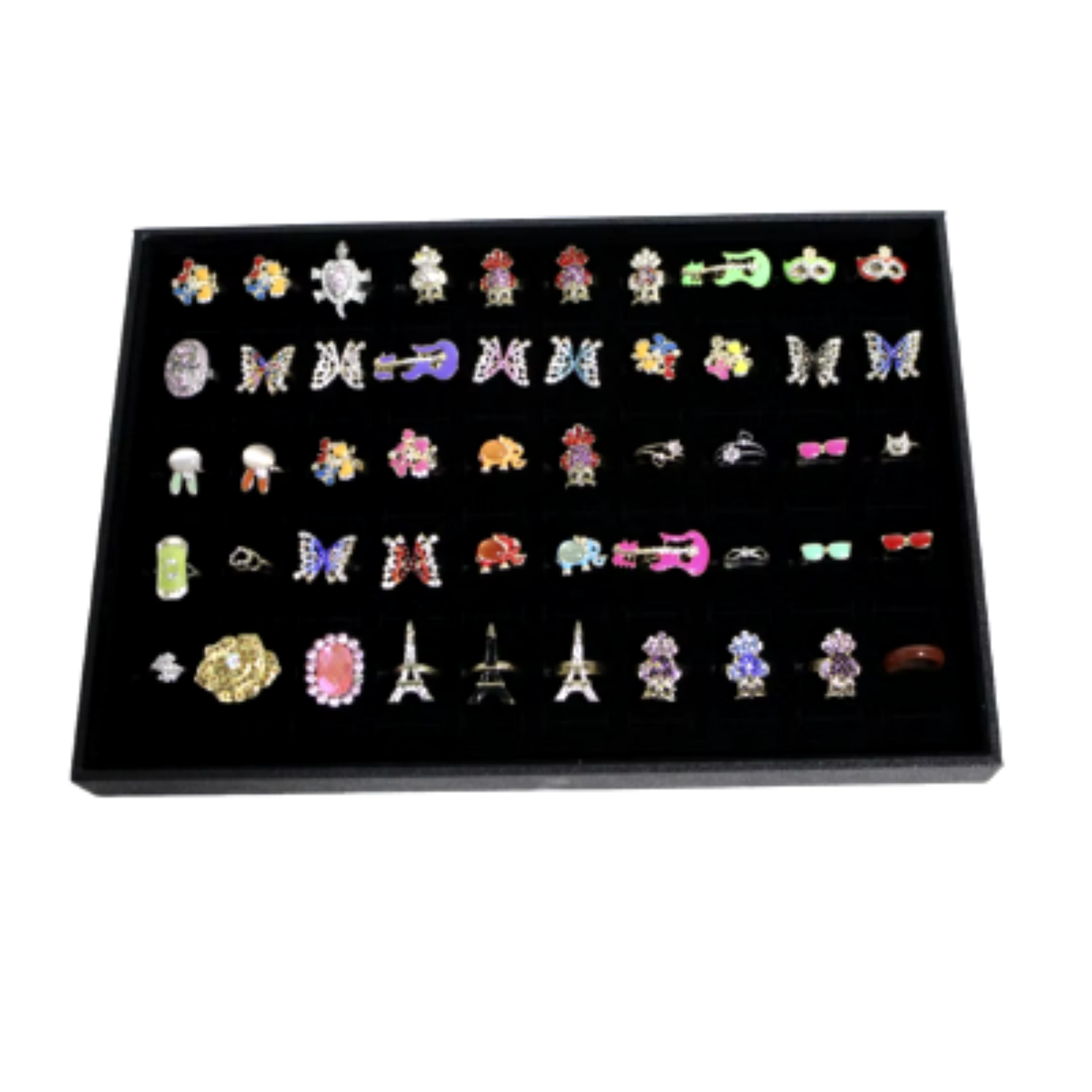 Organiza y muestra tus anillos con estilo con nuestro práctico exhibidor de anillos. Diseñado para contener hasta 100 piezas, es la solución perfecta tanto para tu hogar como para tu negocio, ofreciendo un toque elegante y profesional.