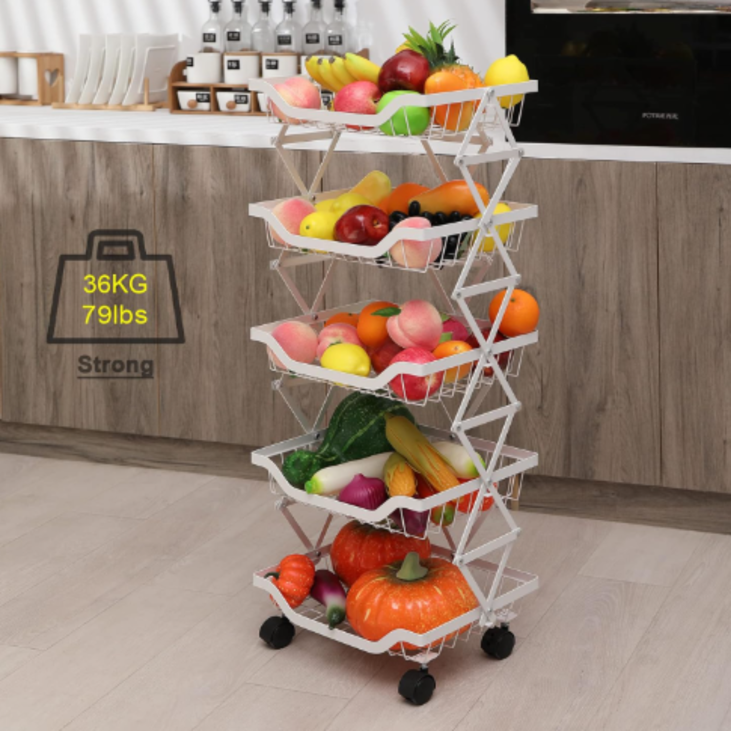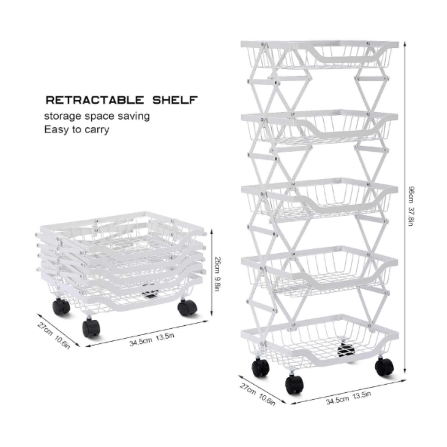 Almacenamiento Multifuncional: Con 5 bandejas este canasto se adapta a tus necesidades. Úsalo como organizador de verduras, contenedor de almacenamiento o incluso como carrito para juguetes. ¡Las posibilidades son infinitas!