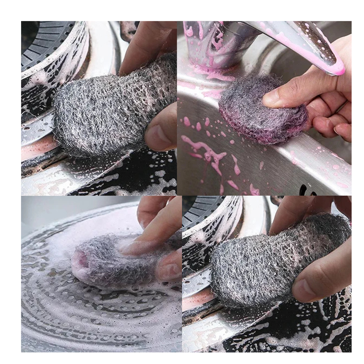 Estropajo de Metal Almohadillas Relleno de Jabón de Lana Acero (6 Piezas)