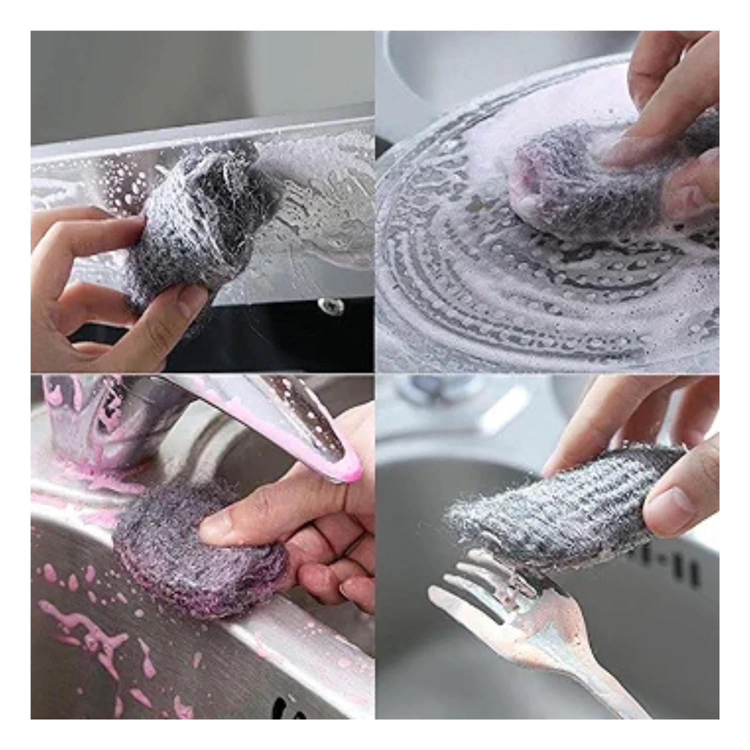 -Material Resistente: Fabricado con acero de alta calidad, este estropajo es duradero y resistente al desgaste, ideal para tareas de limpieza exigentes.
