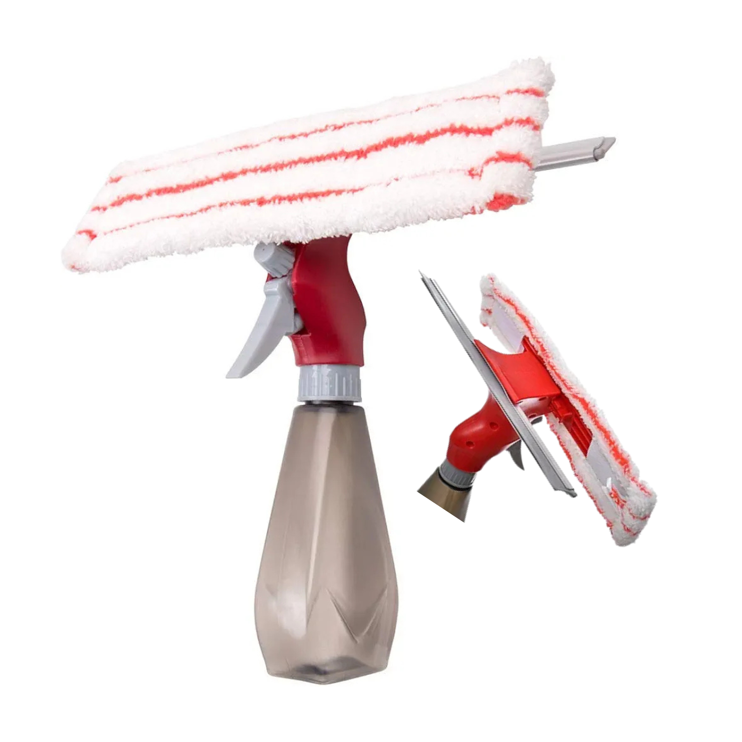 Limpia Vidrios Ventanas Espejos 3en 1 Jalador Spray Botella Paño Microfibra 25x27cm