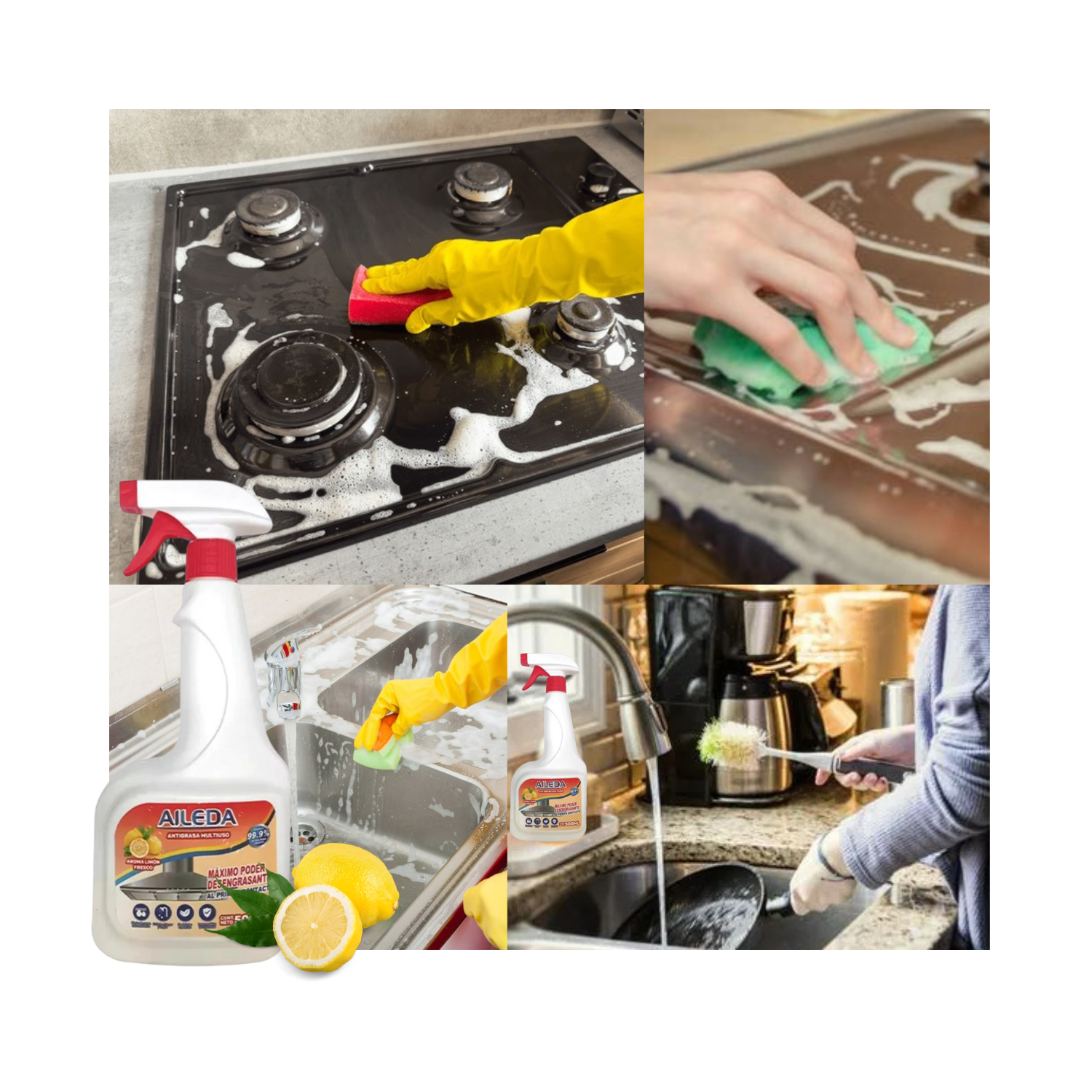 El Limpiador Desengrasante de Cocina de 500 ml con aroma a limón de la marca Aileda es un producto diseñado para facilitar la limpieza en la cocina, especialmente en superficies donde se acumula grasa y suciedad. Su fórmula está diseñada para descomponer y eliminar eficazmente la grasa acumulada en cocinas, estufas, campanas extractoras y otras superficies. Con su aroma a limón no solo deja una sensación de limpieza, sino que también ayuda a neutralizar olores desagradables en la cocina.