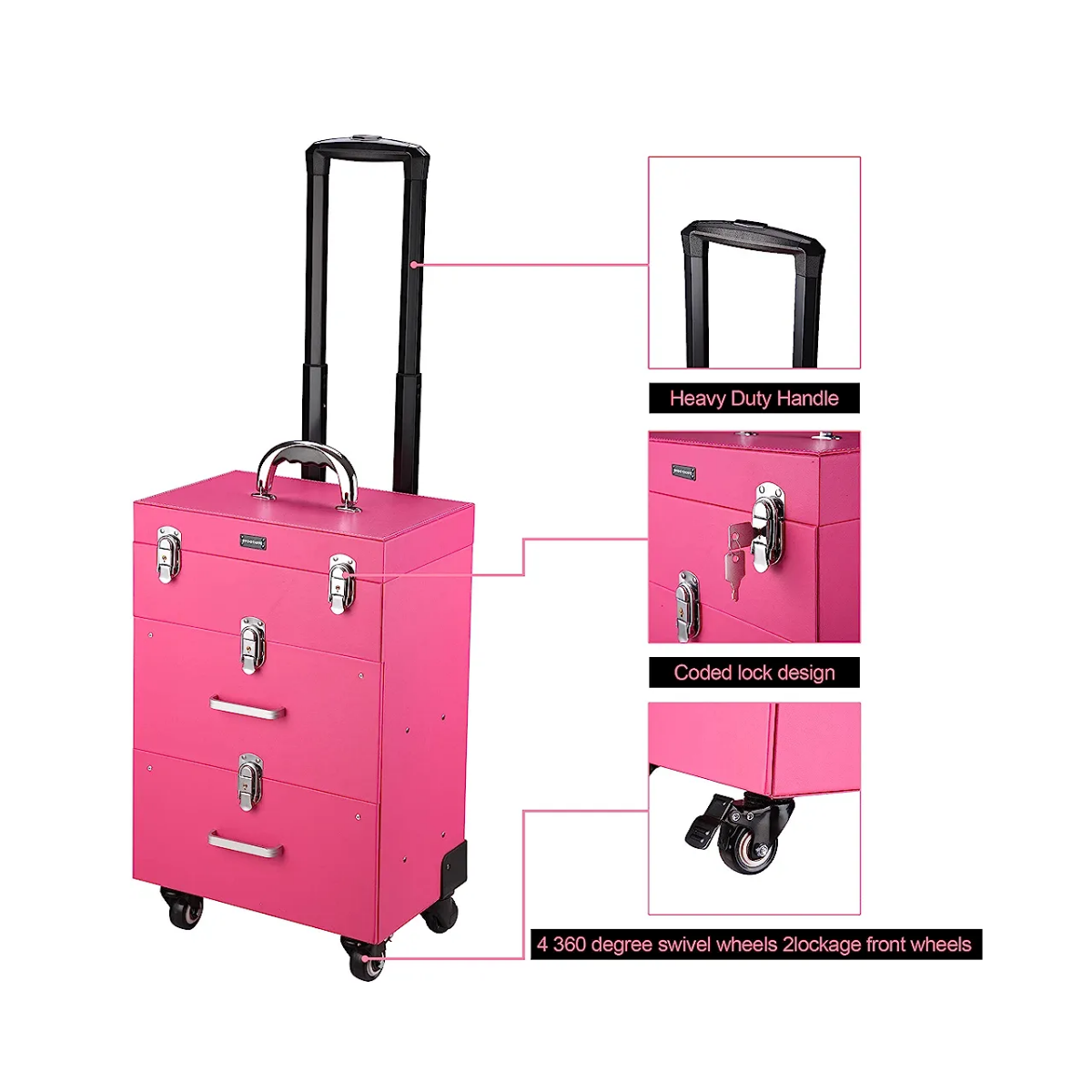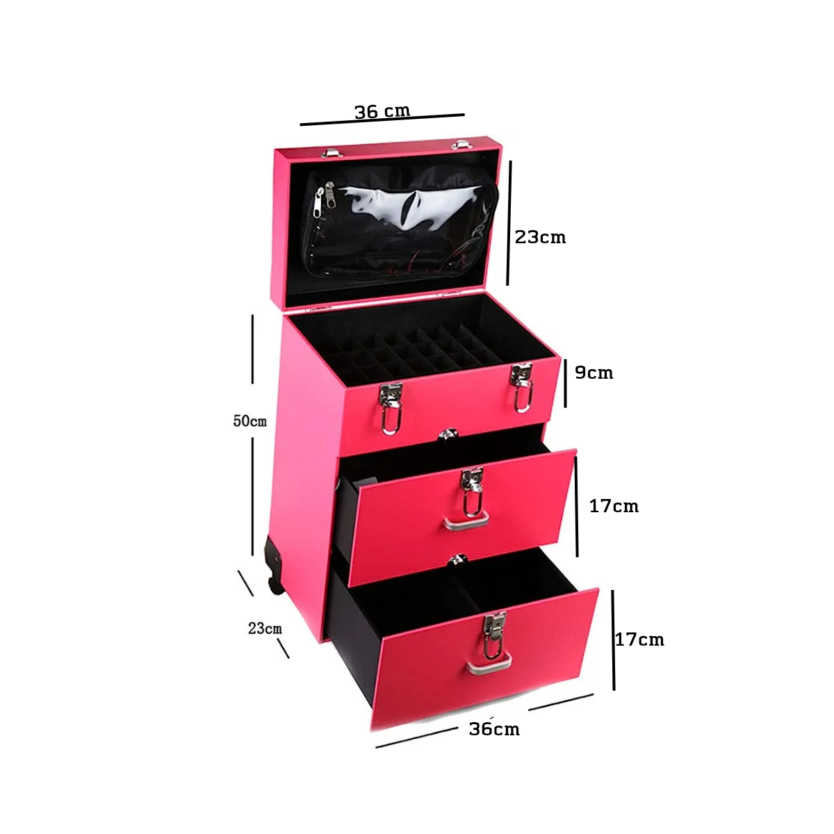 Con esta hermosa y practica maleta podrás organizar fácilmente todos tus productos y maquillaje para trabajar de forma profesional.