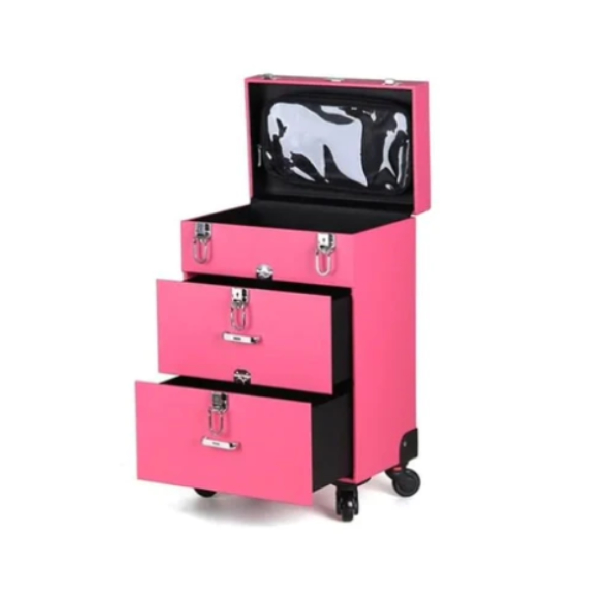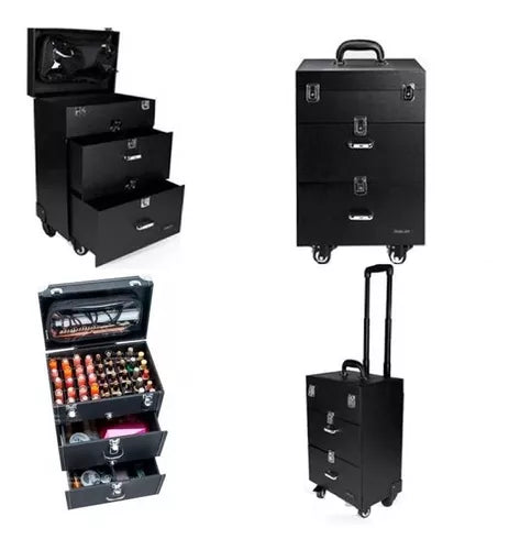 Con esta hermosa y practica maleta podrás organizar fácilmente todos tus productos y maquillaje para trabajar de forma profesional.