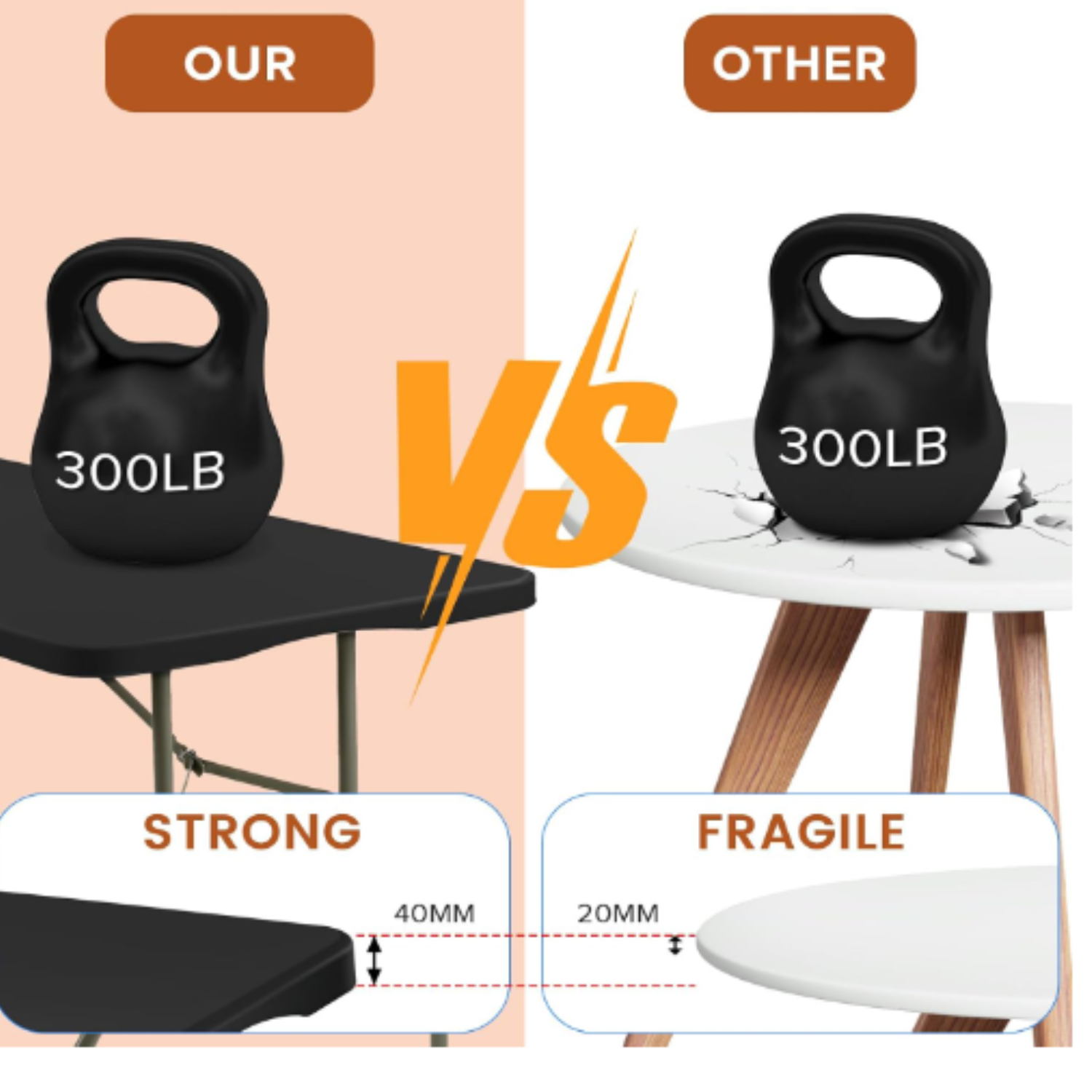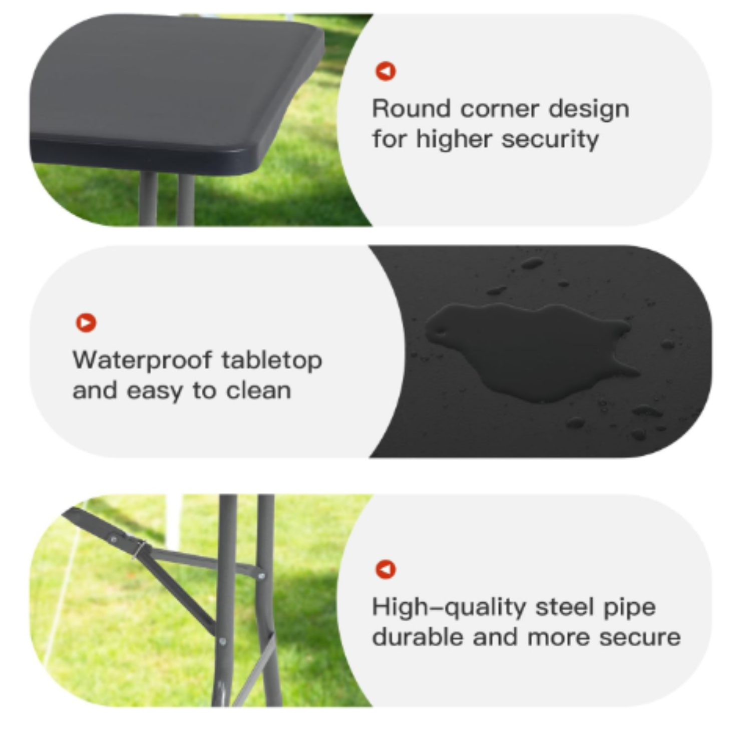 Estructura Robusta: Fabricada con una aleación de acero super resistente y recubierta con pintura anticorrosiva, esta mesa garantiza durabilidad y estabilidad. La tapa de polipropileno de alta densidad, con un espesor de 4 cm, proporciona una superficie sólida y resistente para tus actividades.