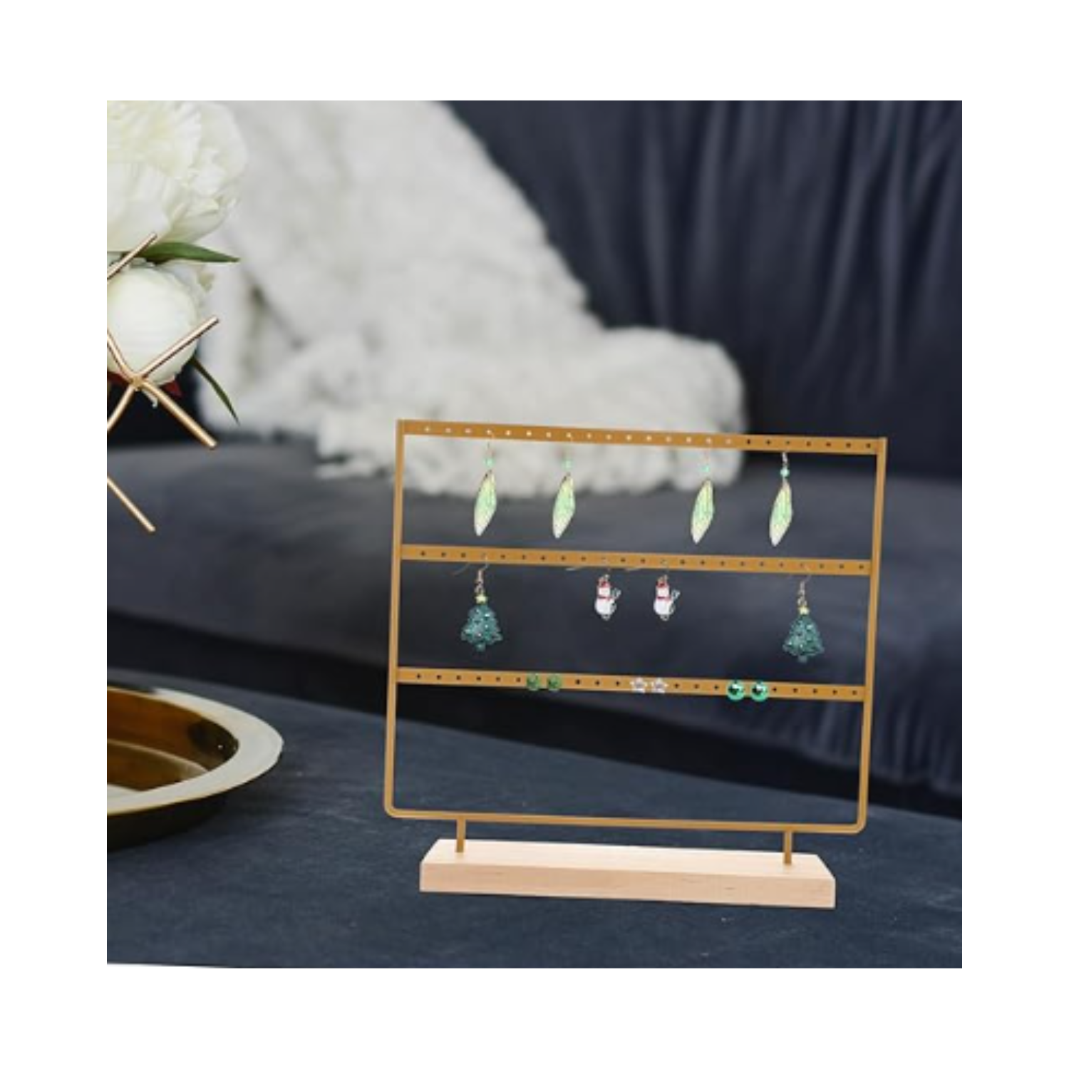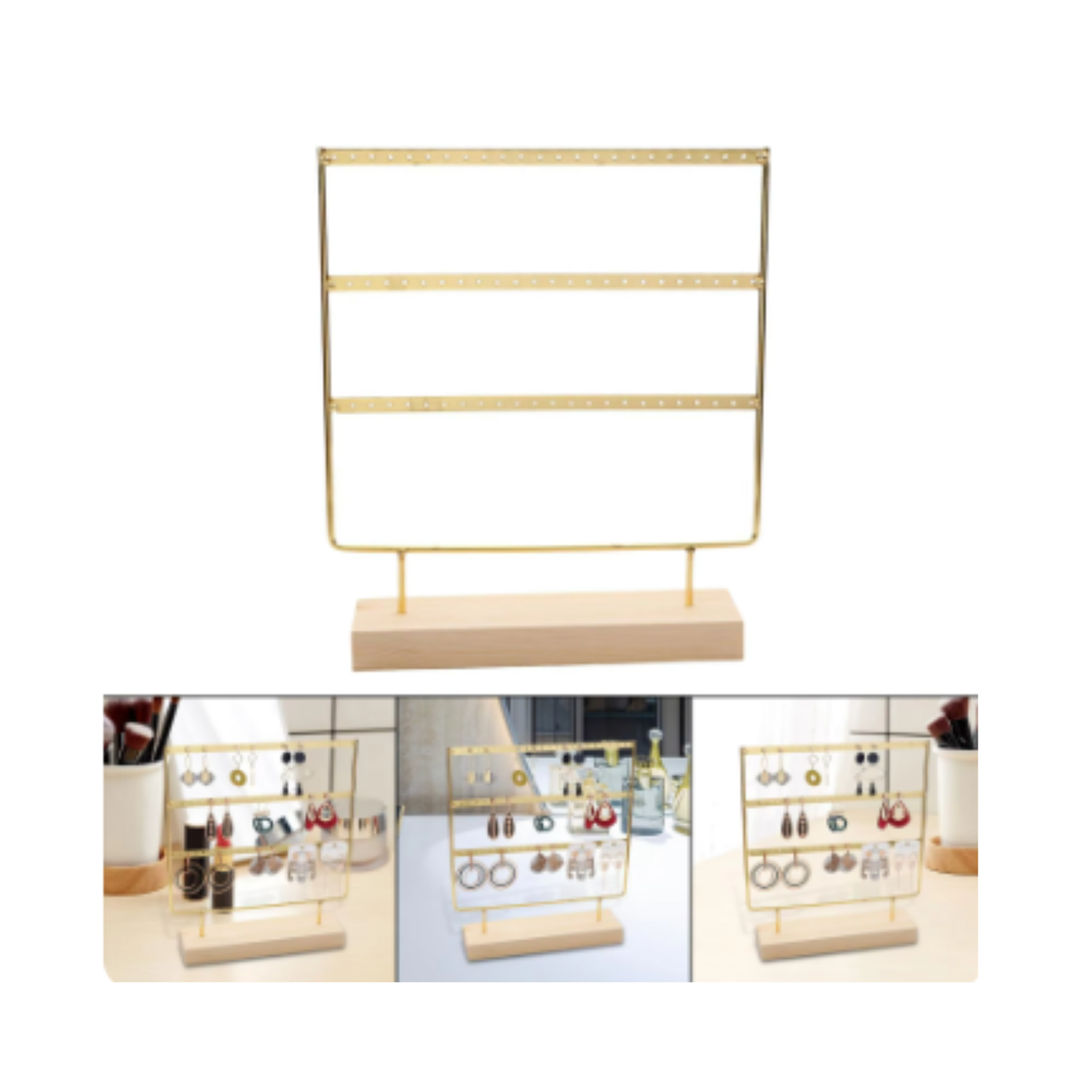 Exhibidor de Aros Dorado con Base de Madera – Elegancia y Funcionalidad en un Solo Producto