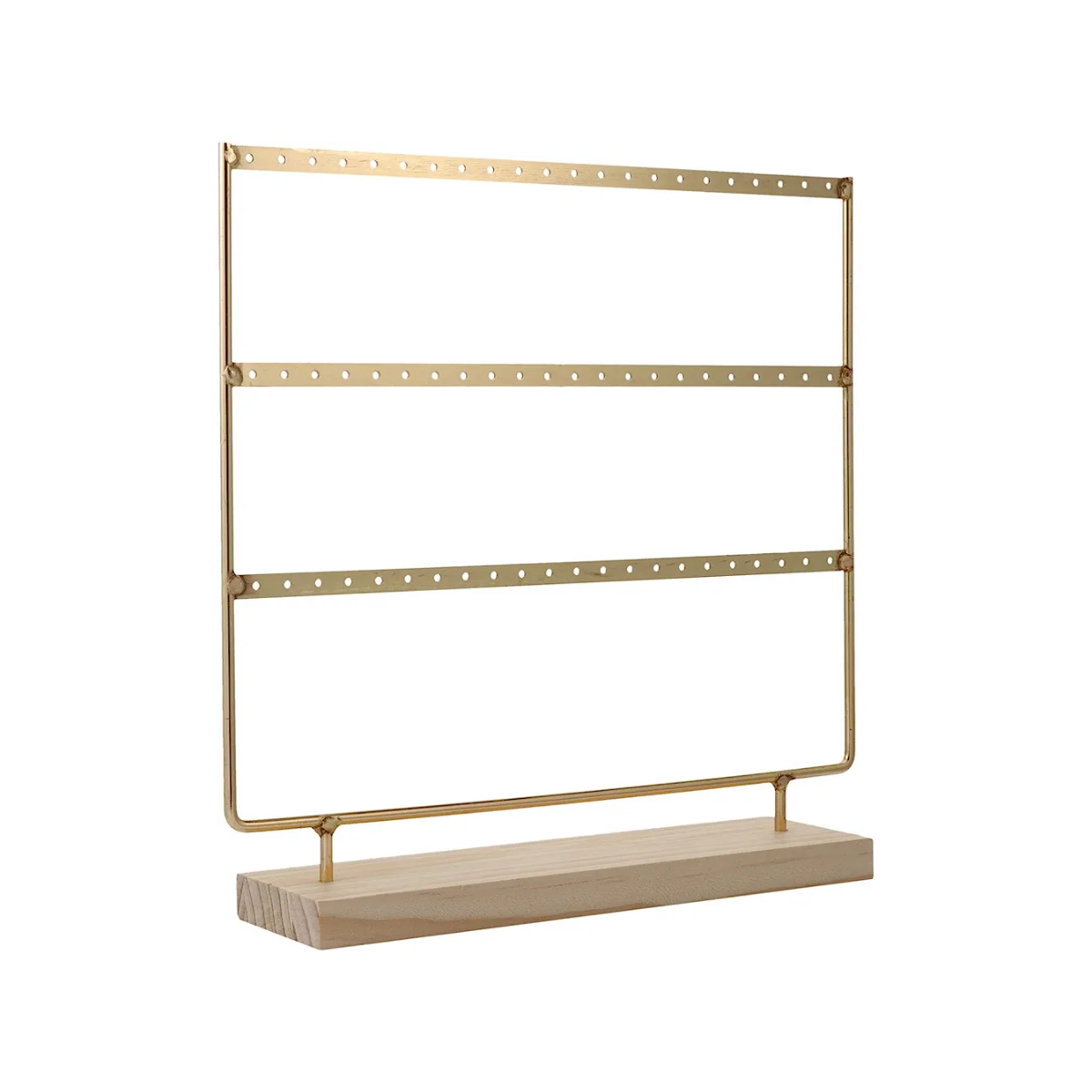 Exhibidores de Joyas y Sarcillos Dorados de Metal con Base De Madera