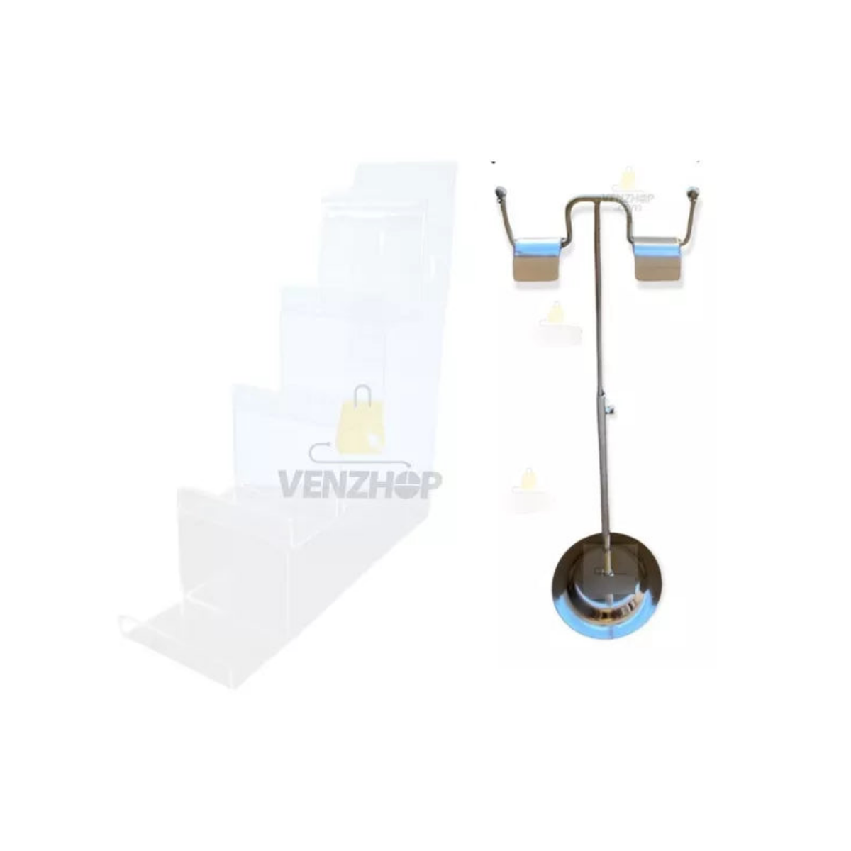Elegante exhibidor Metal graduable para billeteras o carteras y acrílico consta de 5 niveles y es de plástico resistente.