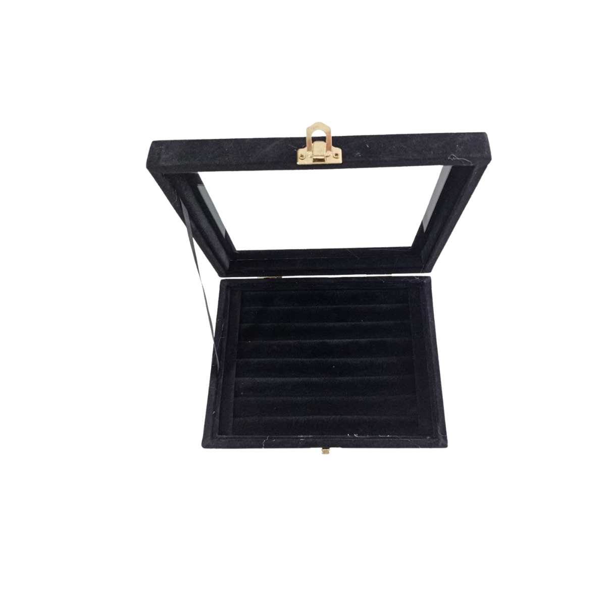 Material: Madera forrado con terciopelo y una tapa de plástico.