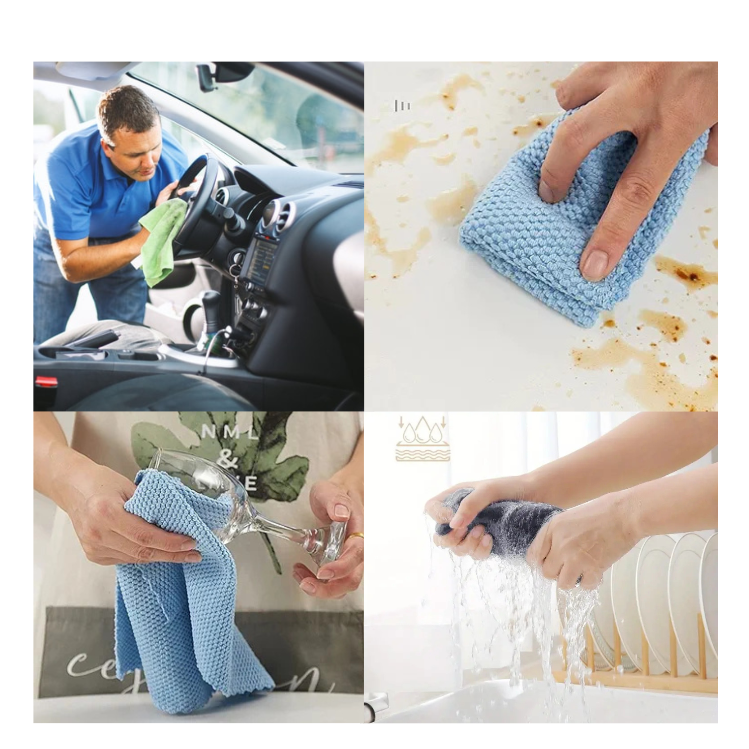 Pueden utilizarse solo con agua, lo que reduce la necesidad de productos químicos agresivos, siendo una opción más ecológica y segura para el hogar. Los paños de limpieza son resistentes y pueden lavarse a máquina, lo que les permite mantener su eficacia durante mucho tiempo. Son aptos para diversas superficies, incluyendo vidrio, madera, acero inoxidable y cerámica, lo que los convierte en un producto multiusos ideal para cualquier tarea de limpieza.Su textura suave evita rayones en superficies delicadas, como pantallas o muebles pulidos.