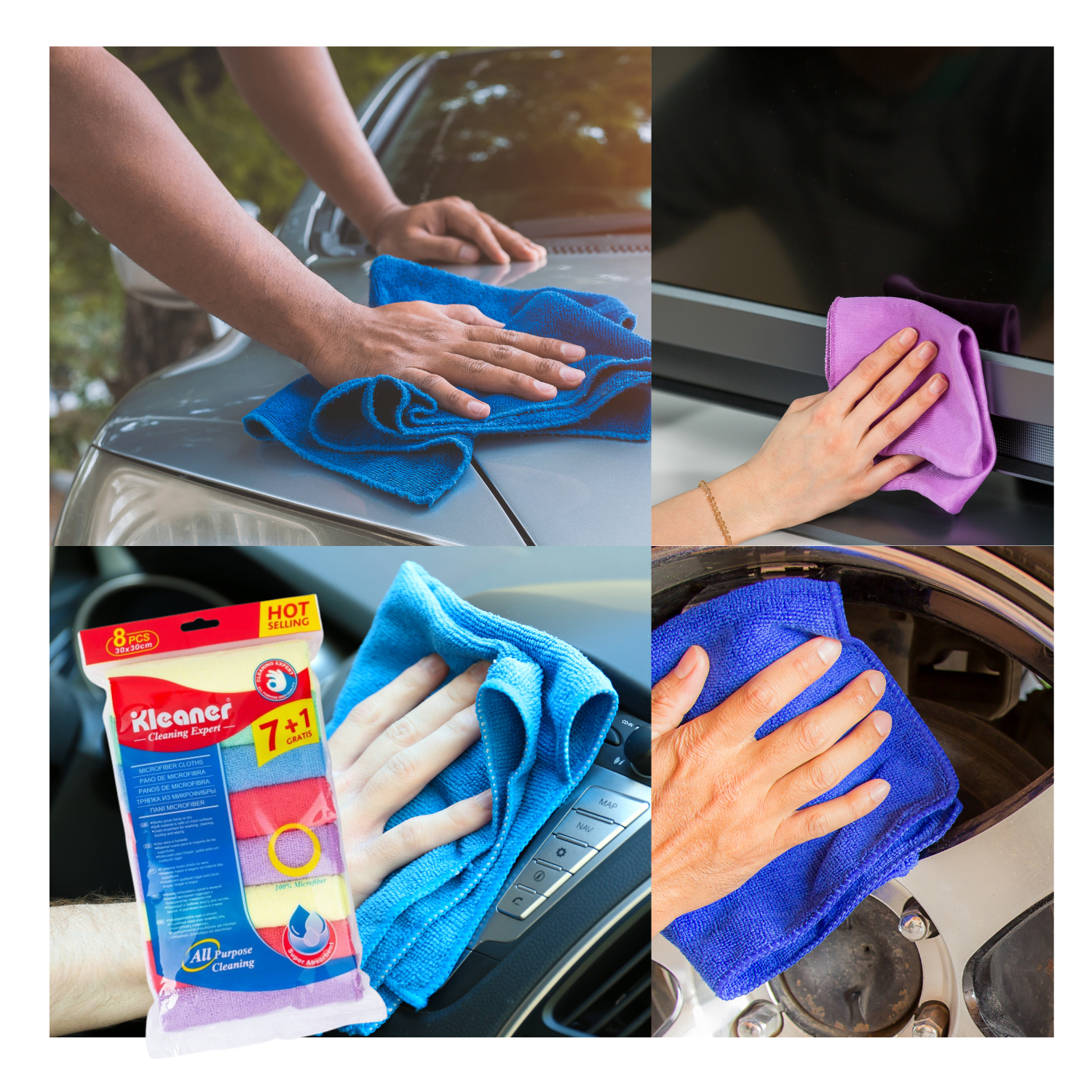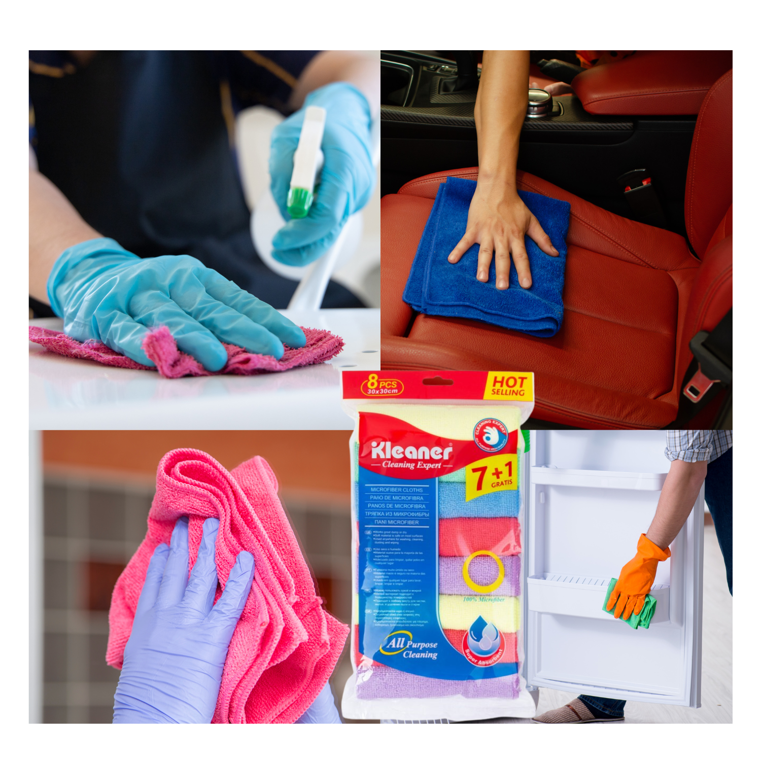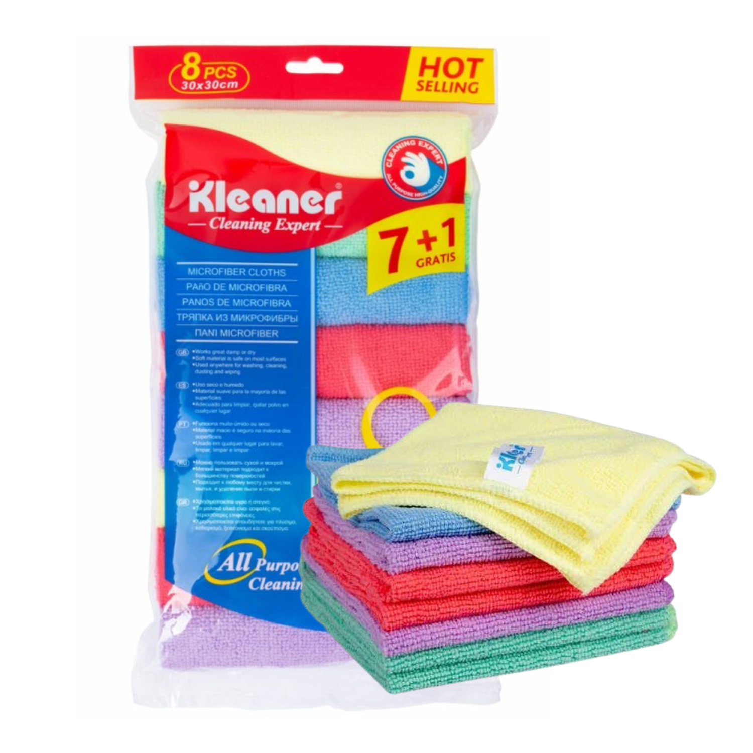 ¡Limpieza eficiente y colorida para tu hogar! Presentamos los Paños de Microfibra Multiusos de Kleaner, un set que incluye 7 paños en variedad de colores + 1 pieza adicional, cada uno con dimensiones de 30x30cm. ¡La solución perfecta para todas tus necesidades de limpieza!