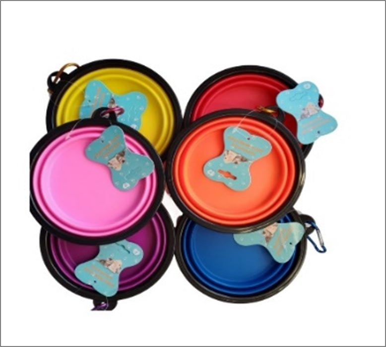 Plato Plegable para colocarle comida o bebida a tu mascota en sus paseos. Hecho de silicona para perros y gatos. Su diámetro es de 17.5cm y su profundidad plegado es de 7.5cm.
