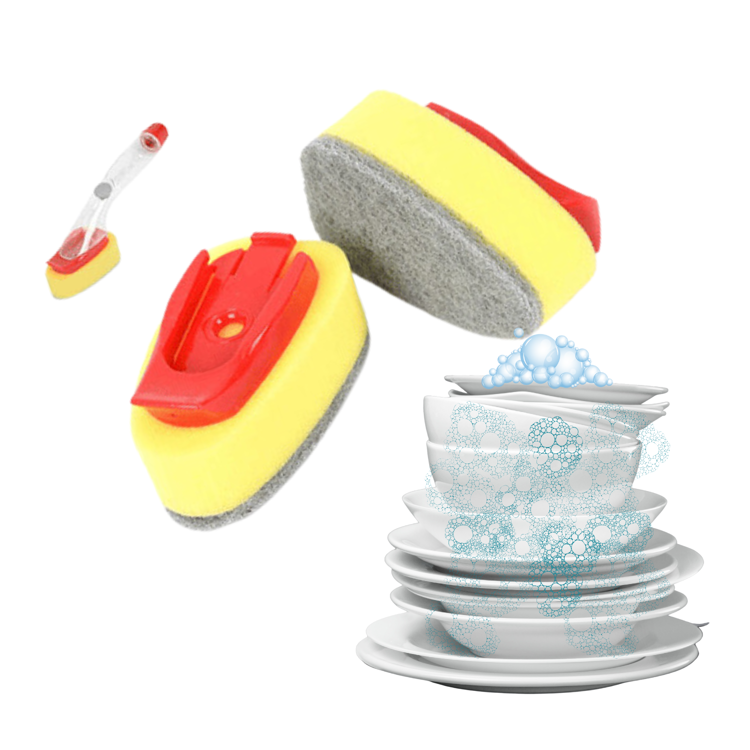 Las esponjas están diseñadas para eliminar la grasa y los residuos más difíciles, garantizando resultados impecables en cada uso. Gracias al dispensador integrado, podrás aplicar la cantidad justa de detergente, optimizando su uso y haciendo que cada lavado sea más rápido. Cambiar las esponjas es un proceso sencillo y rápido, permitiéndote volver a disfrutar de una limpieza eficiente en cuestión de segundos.