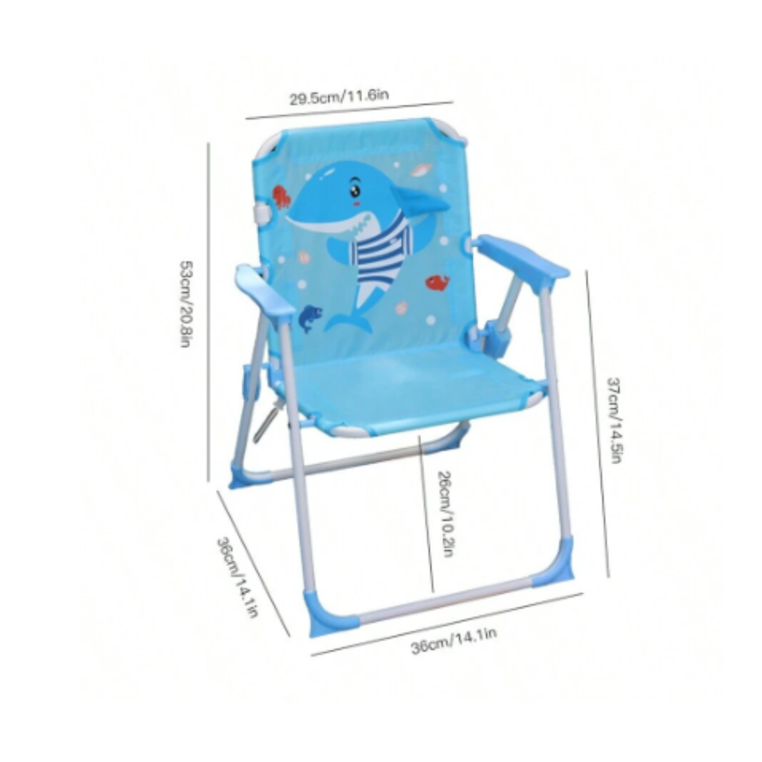 Diseño Cómodo y Atractivo: Con cojines suaves y una altura adecuada, esta silla garantiza que los niños se sientan cómodos mientras disfrutan de actividades en la playa o el parque. Sus colores brillantes y diseños divertidos captarán la atención de los más pequeños, animándolos a sentarse y relajarse.