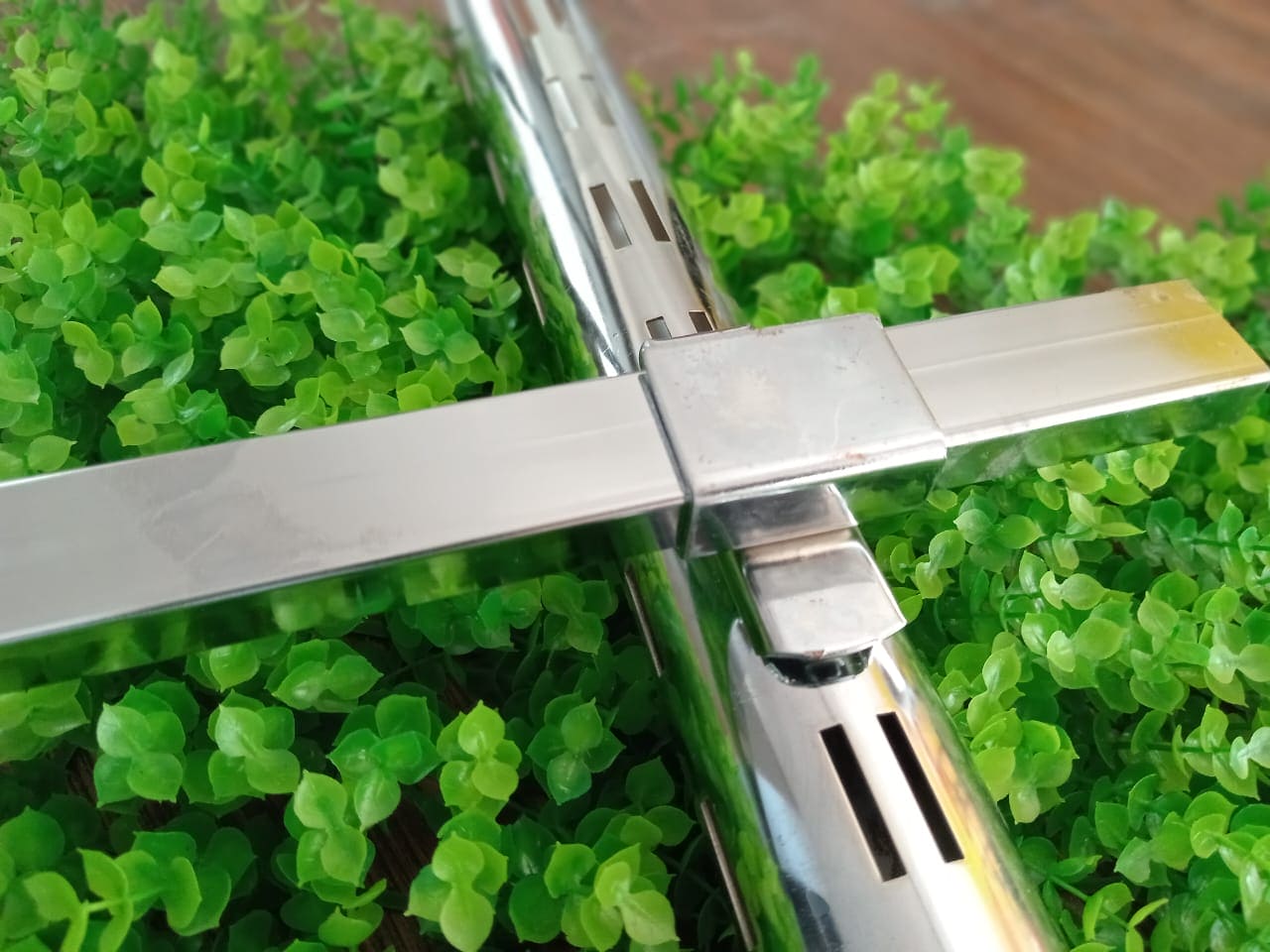 Soporte de Riel o Pilar para barra ideal para estructura de tienda cromada solución perfecta. Cada soporte está fabricado con materiales de alta calidad, lo que garantiza su durabilidad y resistencia. Además se adapta a cualquier estilo de decoración, desde el más clásico hasta el más contemporáneo.